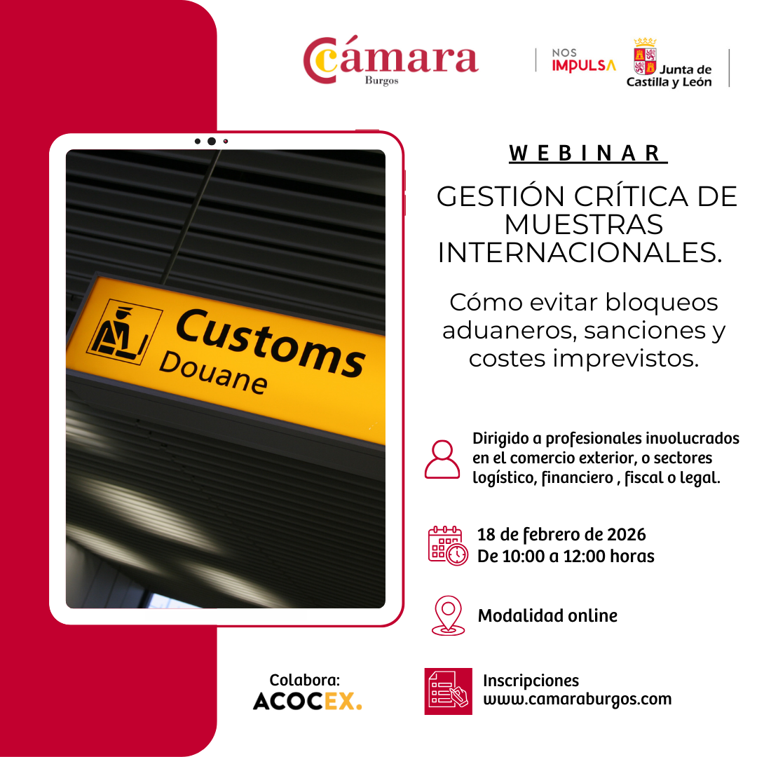 INFORMACIÓN BÁSICA DE PROTECCIÓN DE DATOS: Responsable: CÁMARA OFICIAL DE COMERCIO, INDUSTRIA Y SERVICIOS DE BURGOS Finalidad: Mantenimiento de relaciones comerciales, profesionales o administrativas y atender lo referenciado en el presente correo electrónico. Derechos y + info: acceso, rectificación, portabilidad, supresión, limitación y oposición así como otros derechos reflejados en https://www.camaraburgos.com/politica-de-privacidad.