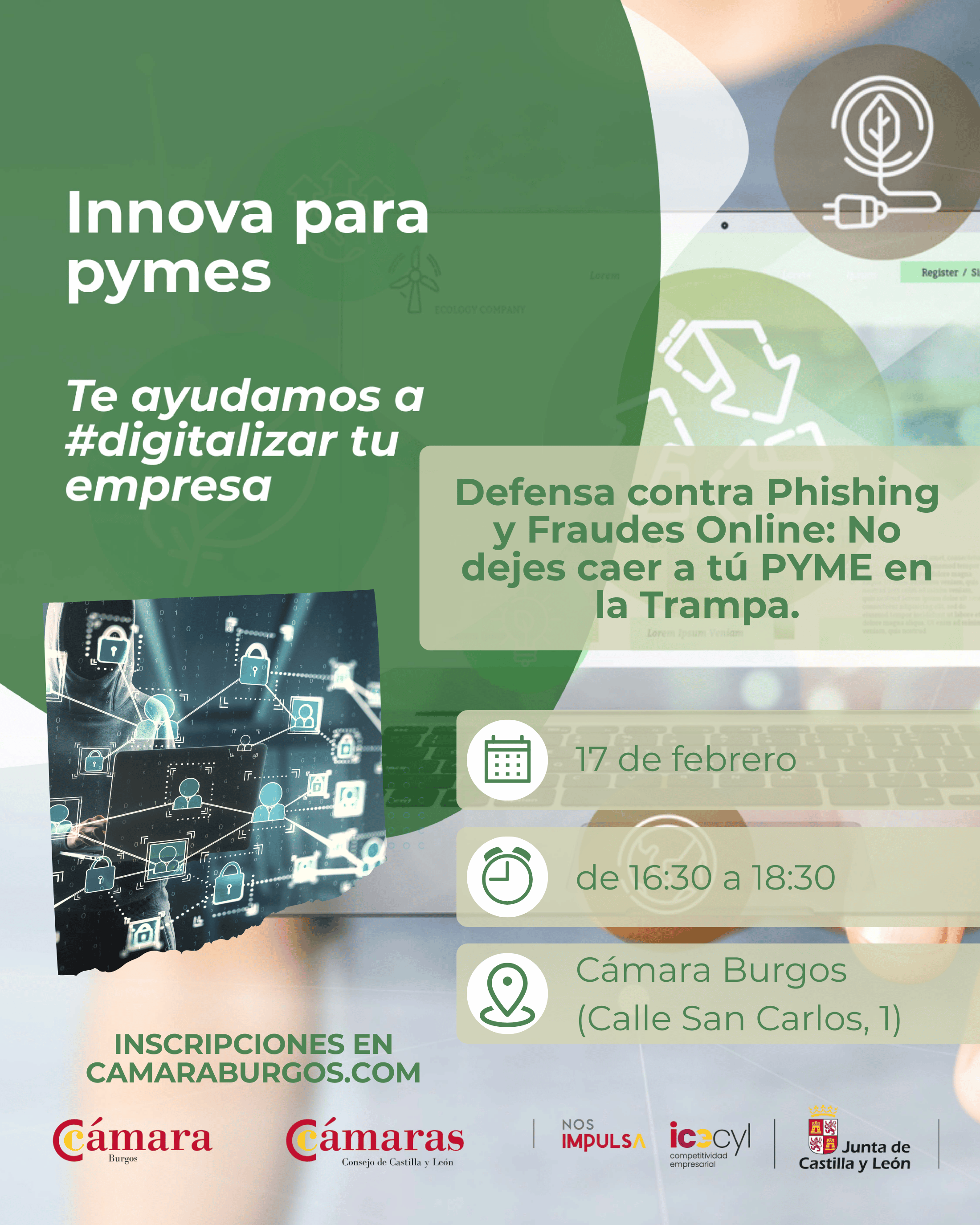 DEFENSA CONTRA PHISHING Y FRAUDES ONLINE Un taller para aprender a detectar correos falsos, webs fraudulentas y estafas en redes sociales que afectan especialmente a autónomos y pymes. |