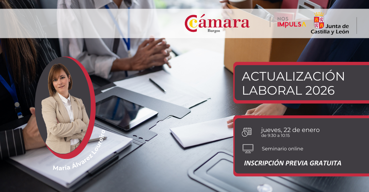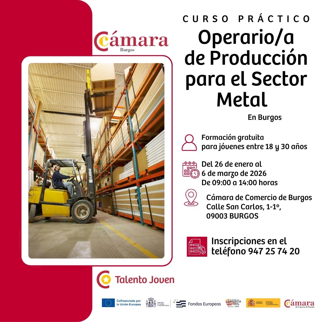 ABIERTAS LAS INSCRIPCIONES DEL PROGRAMA TALENTO 45+ Para personas desempleadas de entre 45 y 60 años. La primera formación e intermediación laboral se desarrollará del 9 al 24 de febrero de 2026, en horario de 9:00 a 14:00 horas en la sede de la Cámara de Burgos. Una oportunidad para conectar tu experiencia con oportunidades reales. |