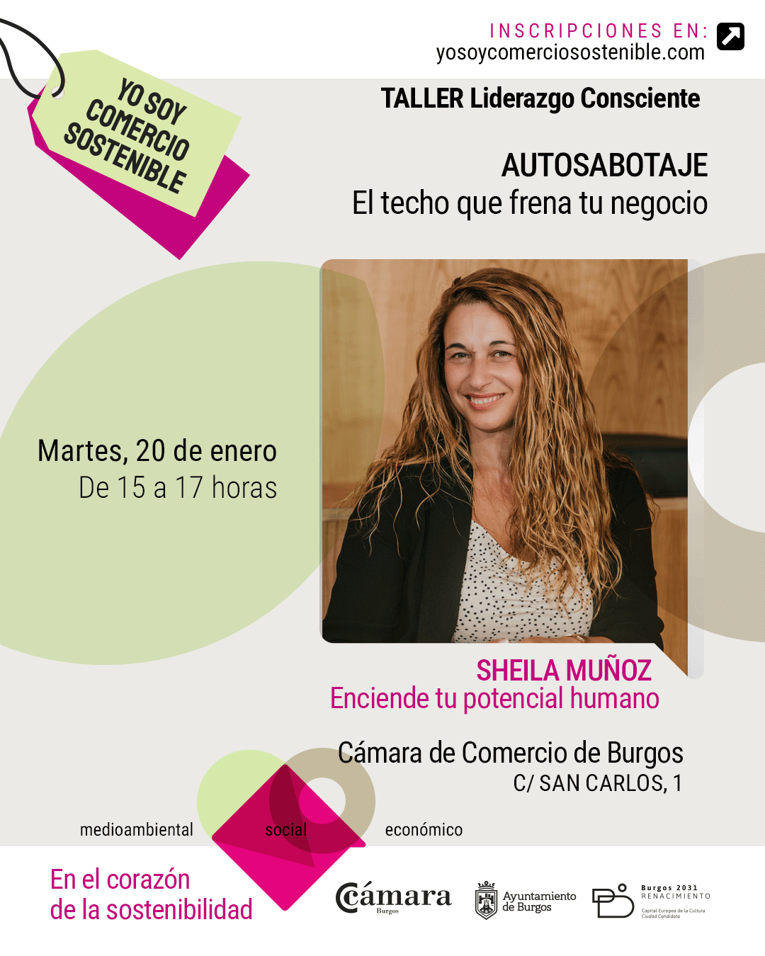 AUTOSABOTAJE. EL TECHO QUE FRENA TU NEGOCIO Un taller de liderazgo consciente impartido por Sheila Muñoz, maestra y coach experta en gestión emocional y motivación. Aprende herramientas de localización para nuestro "saboteador interno". Refuerza tu confianza para lograr más claridad y que no te puedan tus inseguridades. Adquiere herramientas para el manejo de la mente y así poder atravesar las diferentes adversidades diarias. Identifica cuál es la esencia y el valor diferenciador de tu comercio para destacar en el mercado. |