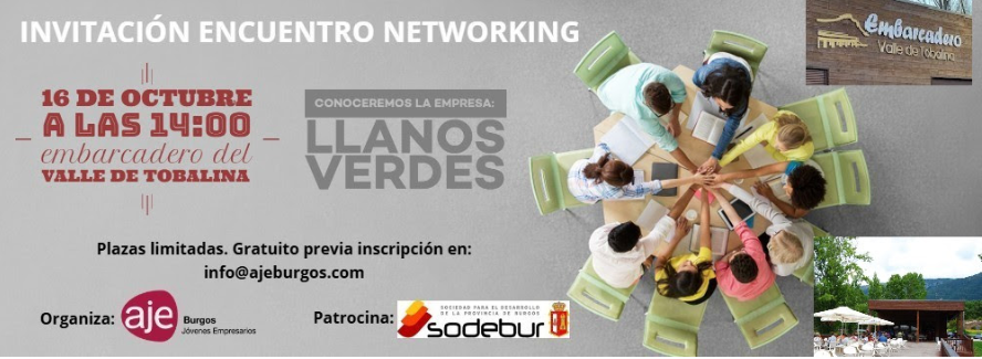 AJE Burgos con el patrocino de Sodebur-Diputación, organiza este evento que se celebrará el jueves 16 de octubre a las 14:00 horas, donde conoceremos la empresa Llanos Verdes.