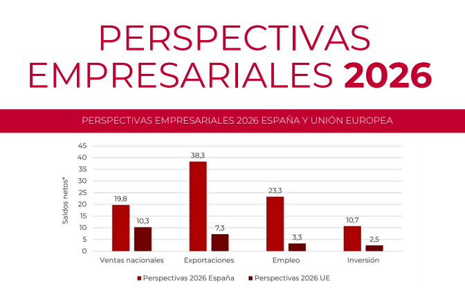 Las empresas españolas encaran 2026 con optimismo apoyadas en las exportaciones. Unas expectativas muy por encima de las del conjunto de la UE y de la zona euro. Para dos de cada tres empresas españolas los costes laborales serán el mayor condicionante de su actividad.